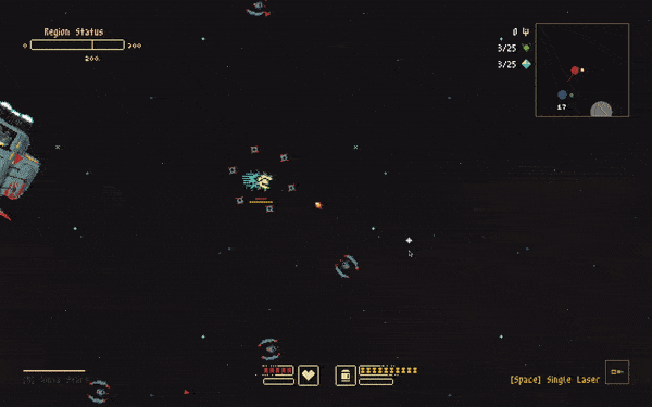 This constraint trickled down to a lot of other design decisions. I felt apprehensive about making too many asteroids in a system so it prevented me from making things like asteroid belts. I couldn’t have enemies drop too many resources because it would encourage players to allowing enemies to continue spawning and farming then until they had enough resources to complete the region.